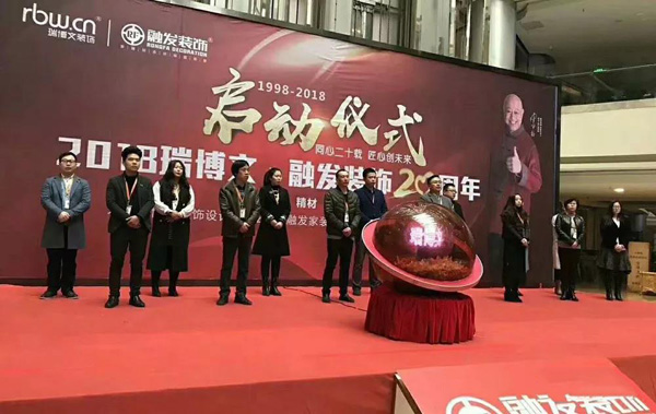 瑞博文·融發(fā)裝飾董事長江勇、總經(jīng)理湯謹(jǐn)賓以及公司的管理人員和全體員工以飽滿的激情共同吹響了瑞博文·融發(fā)裝飾2018年 “融發(fā)20年,匠心創(chuàng)品質(zhì)”的號(hào)角,展示了瑞博文·融發(fā)裝飾團(tuán)隊(duì)高度的凝聚力、向心力。